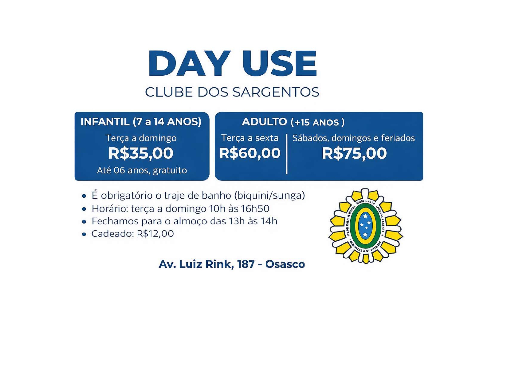 Valores, horários para uso do Day Use no Clube dos Sargentos
