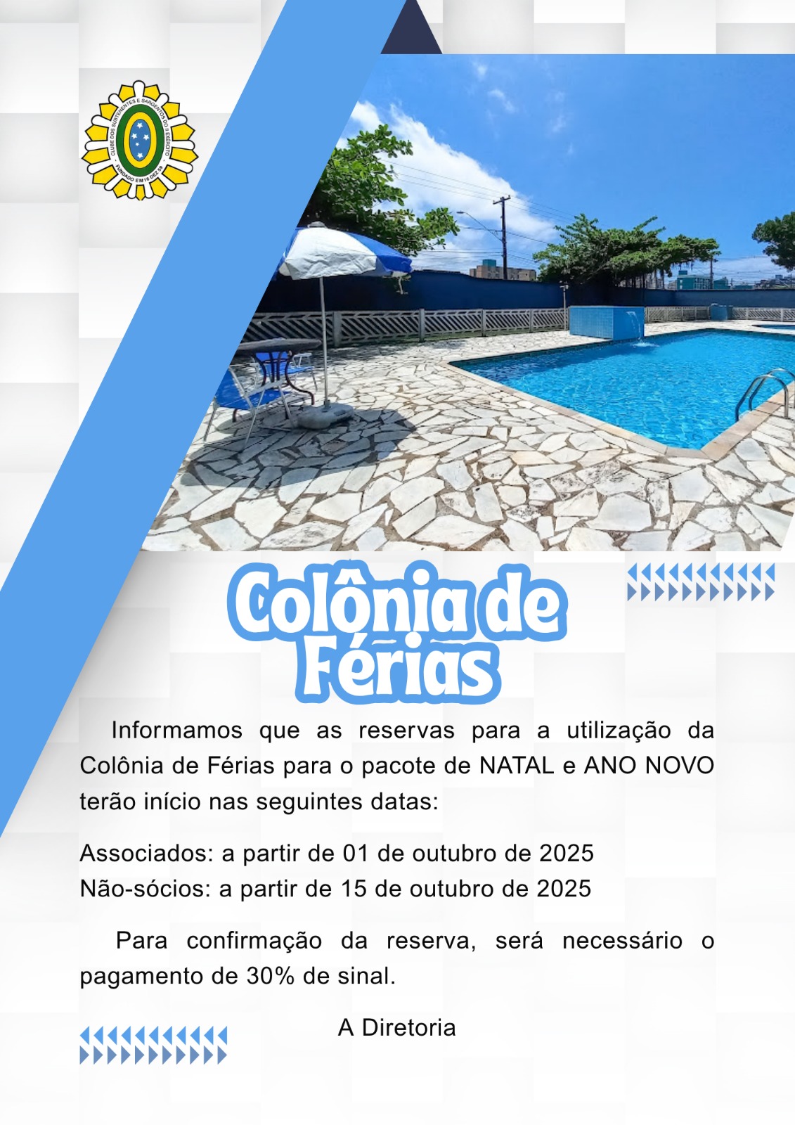 Reservas para a utilização da Colônia de Férias para o pacote de NATAL e ANO NOVO estão abertas.