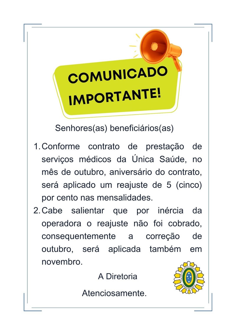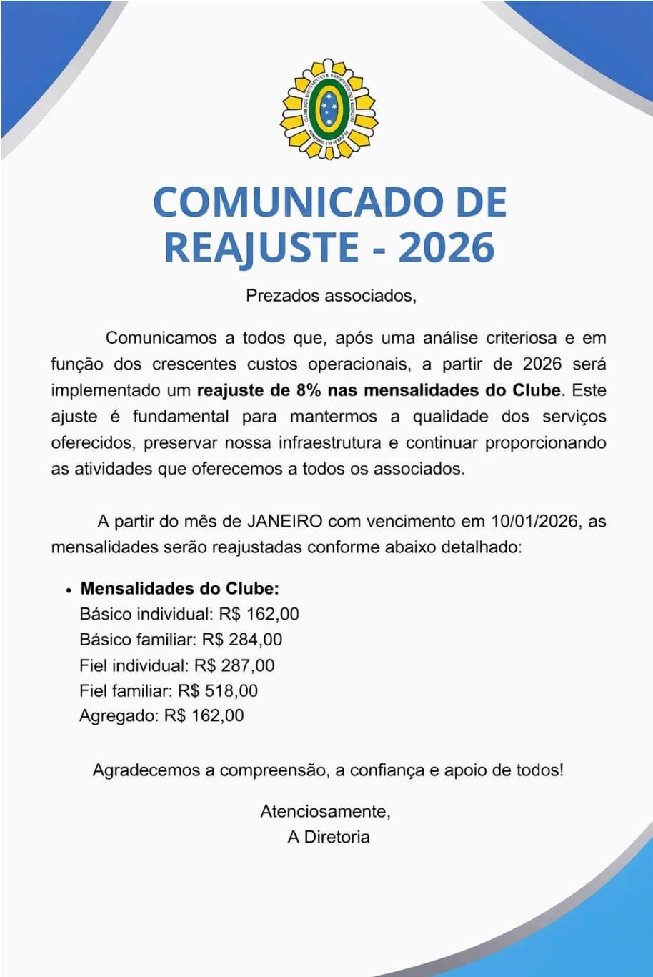 Reajuste de mensalidade a partir do mês de JANEIRO com vencimento em 10/01/2026.